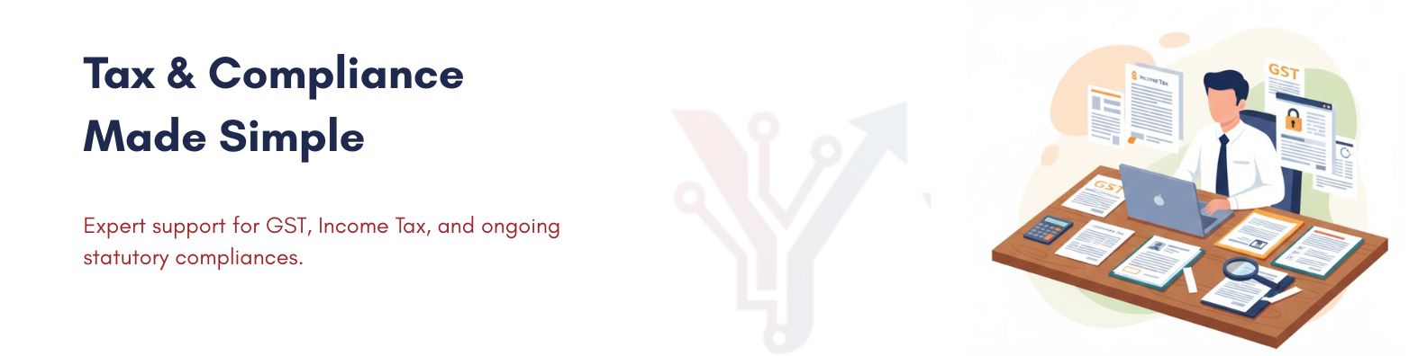 Managing taxes and compliances can be complex and time‑consuming. Our Tax & Compliances services are designed to make taxation simple, transparent, and fully compliant with Indian laws—just like our Government Registration process.